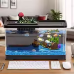 The integrated LED lighting adds a beautiful visual effect while promoting a healthy habitat for your fish and aquatic plants. This system provides optimal light passage, making your underwater landscape glow with life and colour. Whether you’re setting it up in a living room, dorm, or workspace, the Compact LED Fish Tank Kit enhances any interior with elegance and calm.