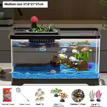 The Compact LED Fish Tank Starter Kit is the perfect choice for beginners and aquarium enthusiasts who want to create a peaceful underwater world in their home, den, or office. Designed with a combination of elegance and functionality, this aquarium set includes everything you need to start your aquatic adventure from an efficient LED light system and filtration unit to decorative plants, pebbles, and coral accessories.