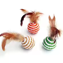 Each ball features a rough-textured sisal surface that helps clean your cat’s teeth and massage their gums during play. The attached feathers grab your cat’s attention instantly, encouraging them to pounce and chase, which promotes physical activity and mental stimulation. The random bright colours make every play session exciting and visually stimulating, while the lightweight design makes it easy for your cat to bat, toss, and carry the toy around.