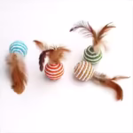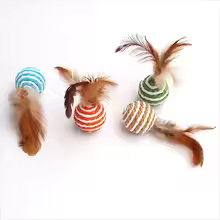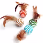 Set of 4 colourful sisal feather balls that keep your cat active, happy, and healthy. Perfect for chasing, chewing, and reducing boredom.